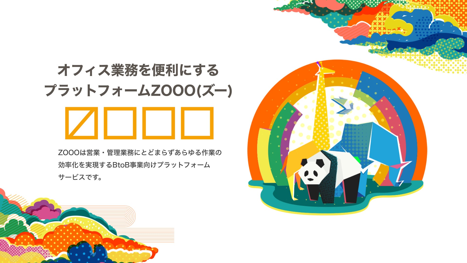 「ZOOO(ズー)」はあらゆる作業の効率化を実現する事業者向けプラットフォームサービスです。オフィス業務に役立つサービスや、コラボレーションツールとして活用ができるサービスなどの様々なサービスをご用意しています。